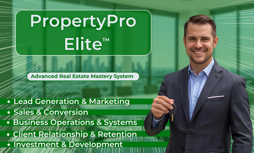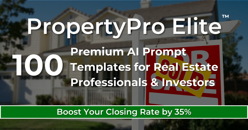 PropertyPro Elite™: The Real Estate Professional's AI Advantage System. 100 AI prompt templates to dominate your real estate business. Enhance lead generation, win more listings, streamline operations, build client relationships, and analyze investments. One-time $197. Proven results: 30% more listings won, 40% more referrals generated. 30-day guarantee.